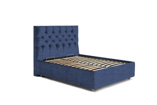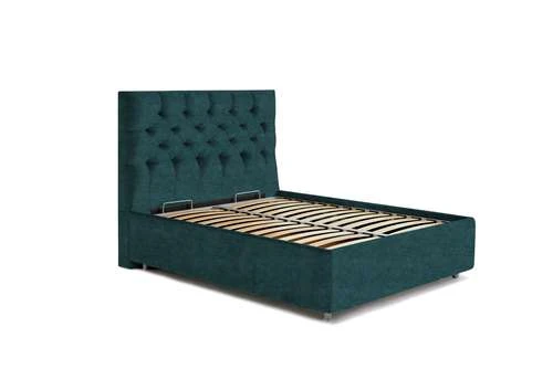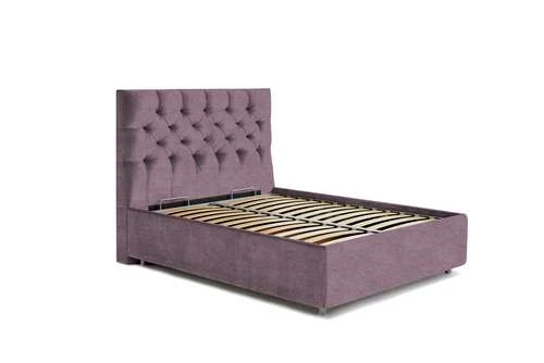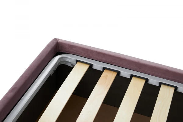 pe un cadru metalic cu lamele late flexibile din mesteacăn stratificat,care oferă posibilitatea organizării unui spațiu de depozitare