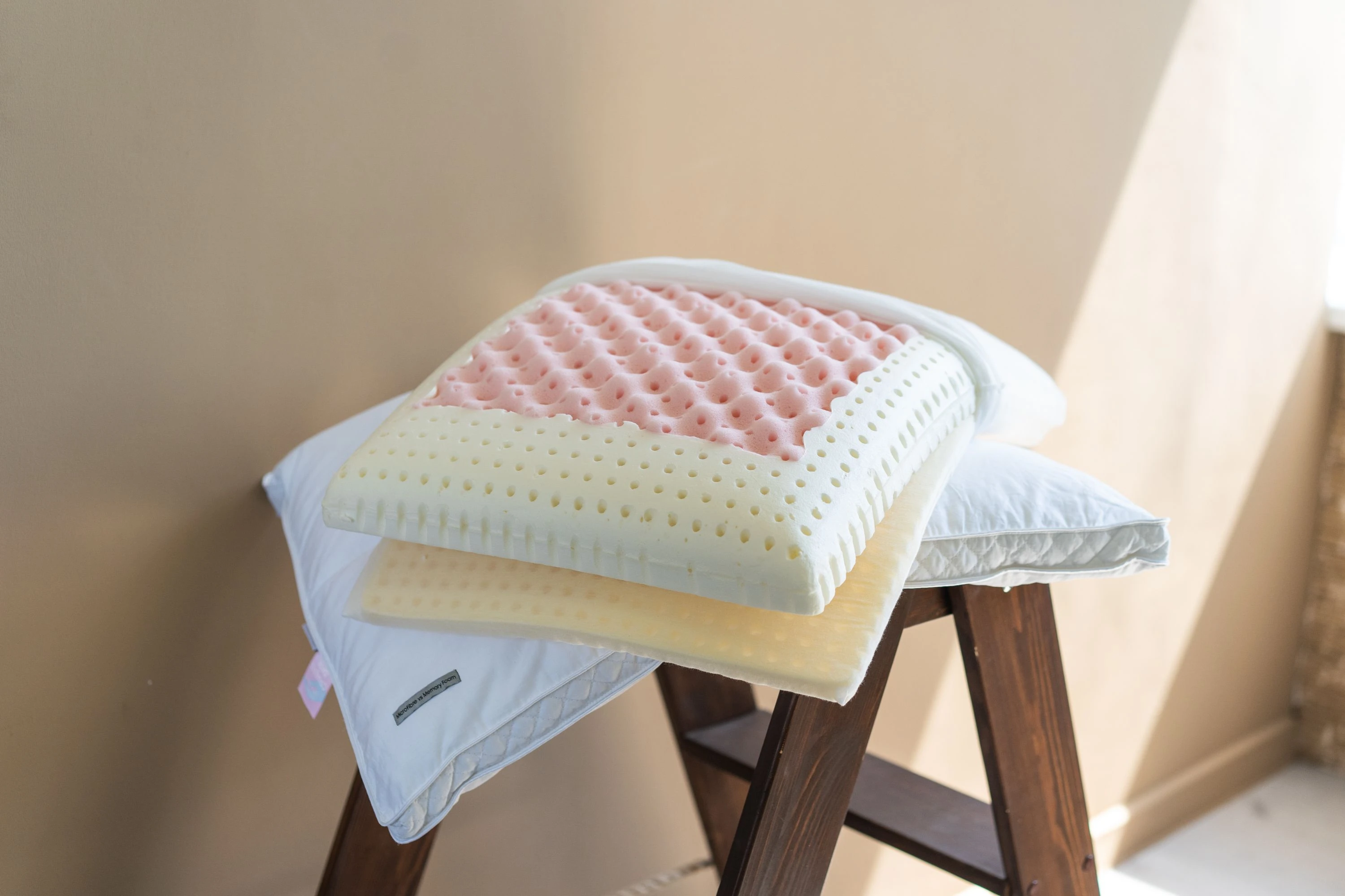 aceste perne se bazează pe straturi din diferite materiale. Aceste straturi pot fi îndepărtate și adăugate pentru a regla înălțimea optimă și nivelul de fermitate.