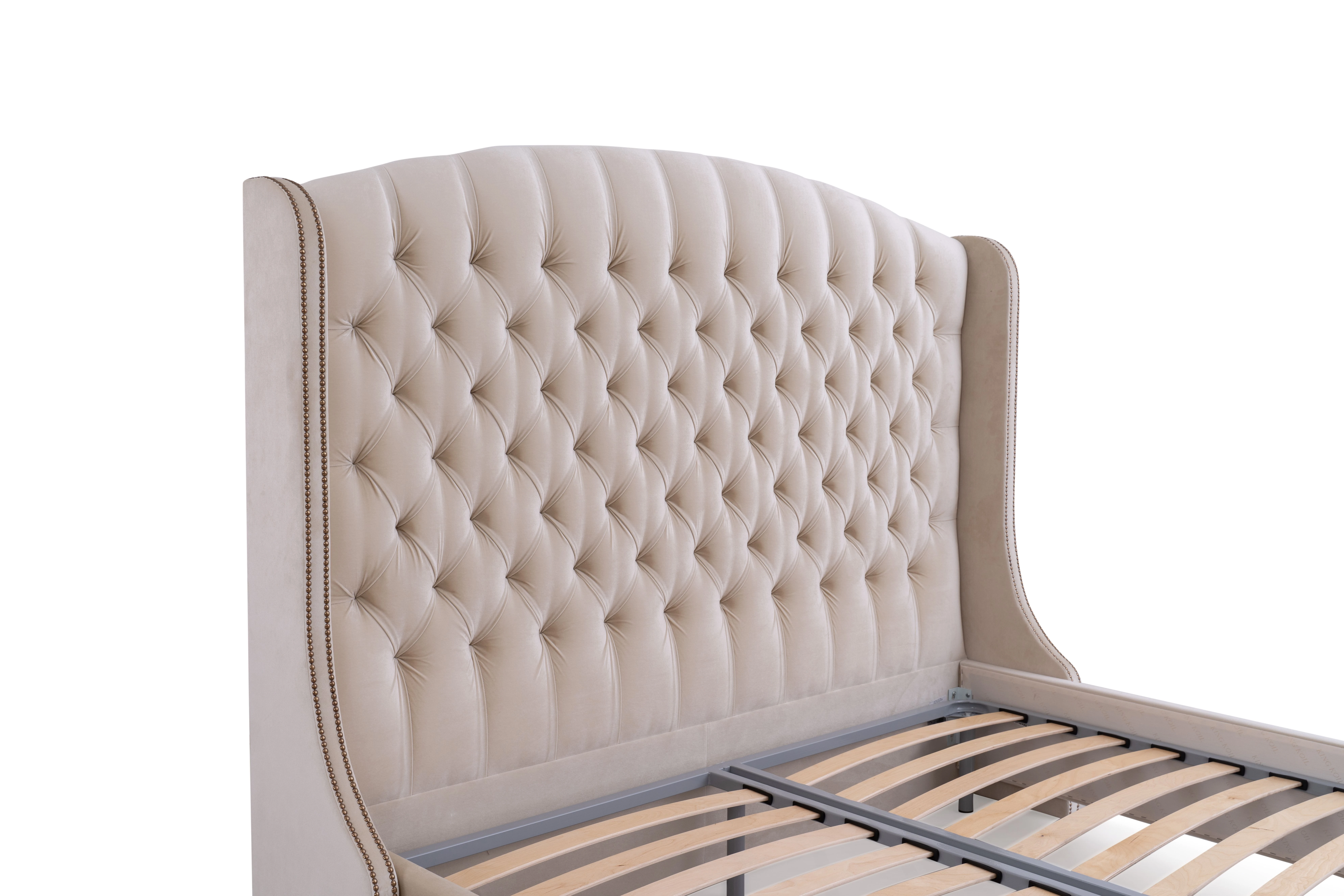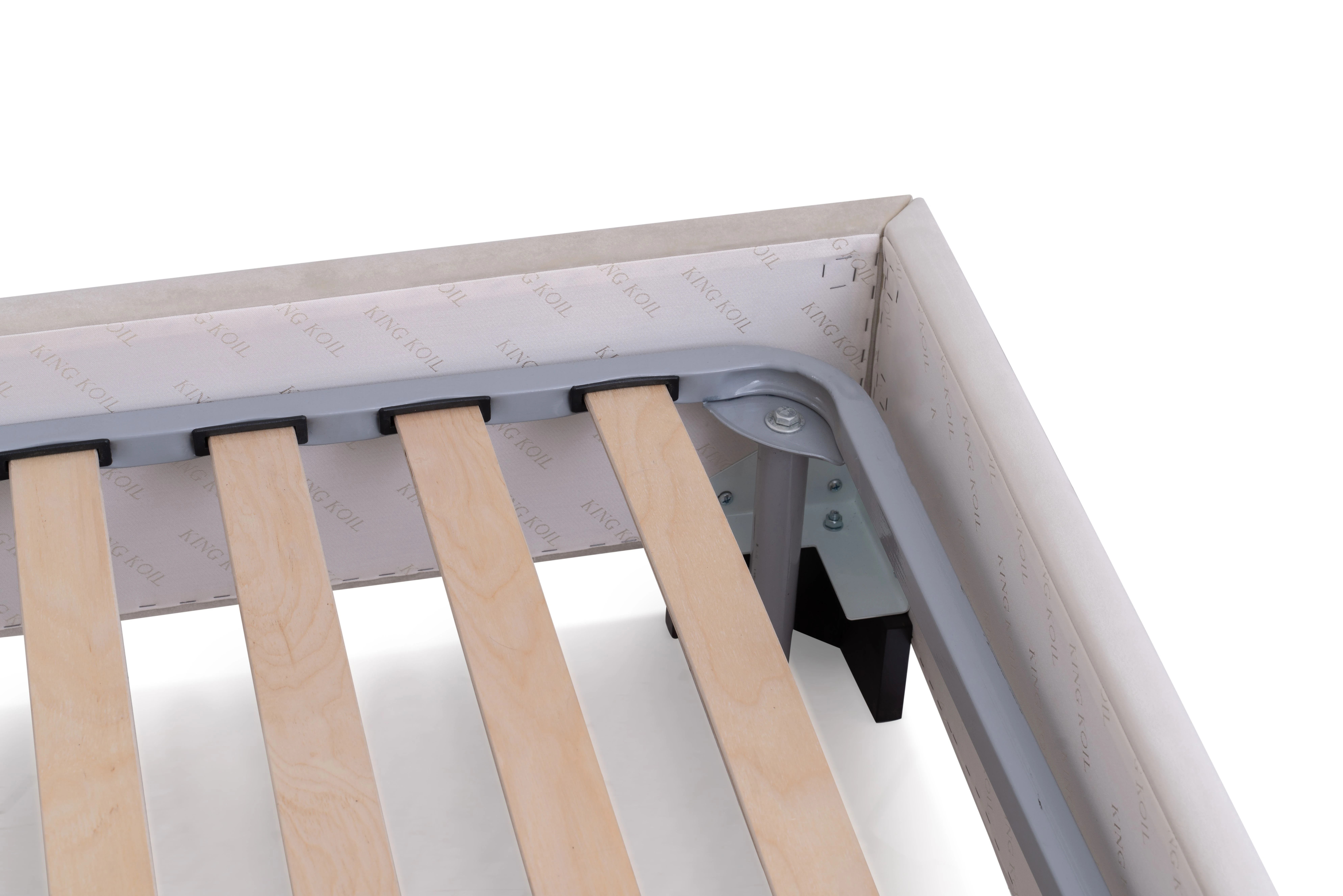 pe un cadru metalic cu lamele late flexibile din mesteacăn stratificat,care oferă posibilitatea organizării unui spațiu de depozitare