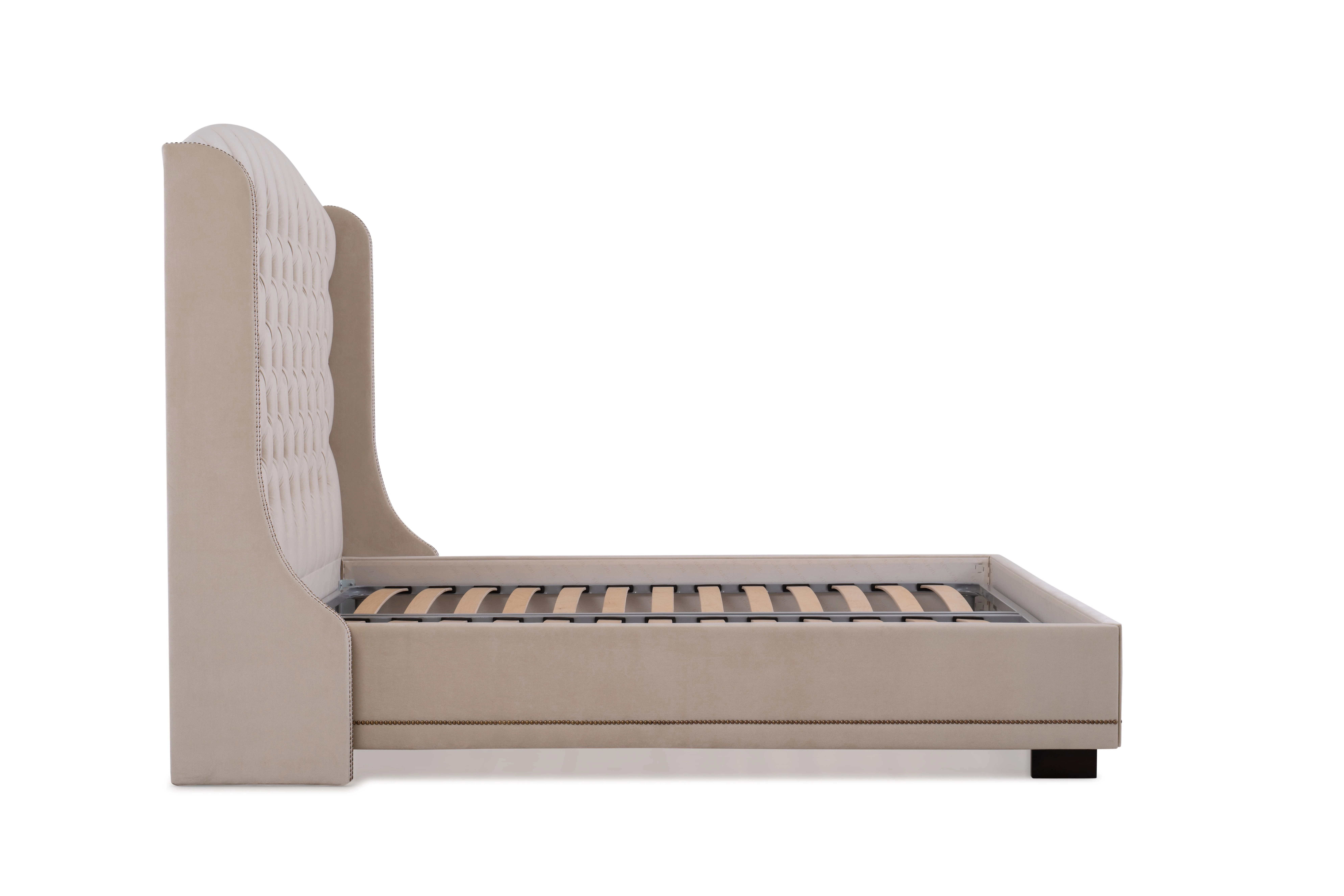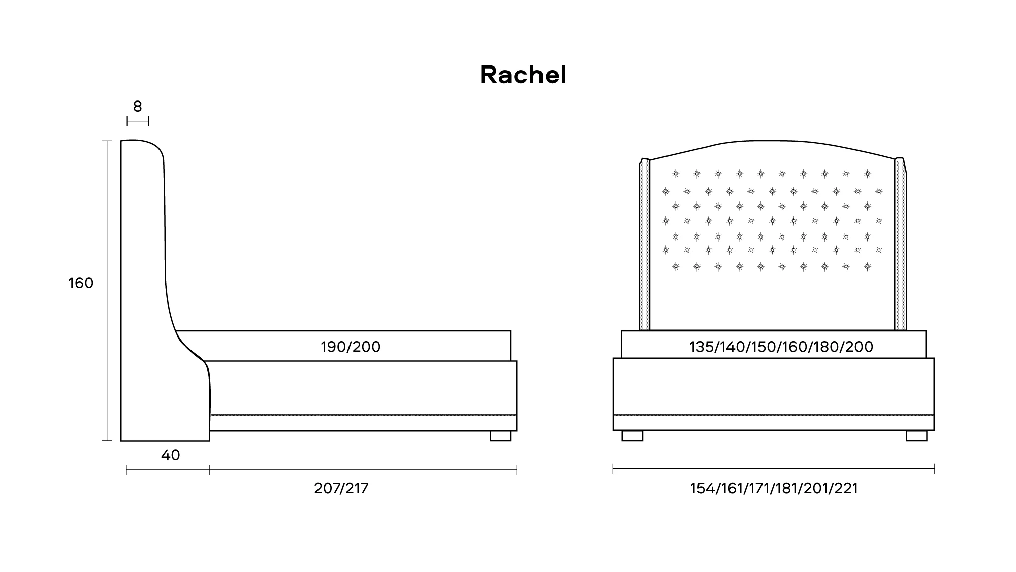 Simplitatea, eleganța și confortul au fost îmbinate în patul Rachel. Tăblia înaltă și moale creează o senzație specială de calm și siguranță pe tot parcursul somnului.