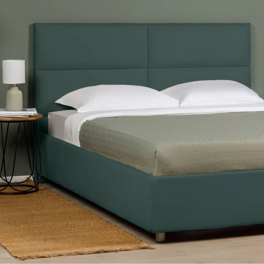 pe un cadru metalic cu lamele late flexibile din mesteacăn stratificat,care oferă posibilitatea organizării unui spațiu de depozitare